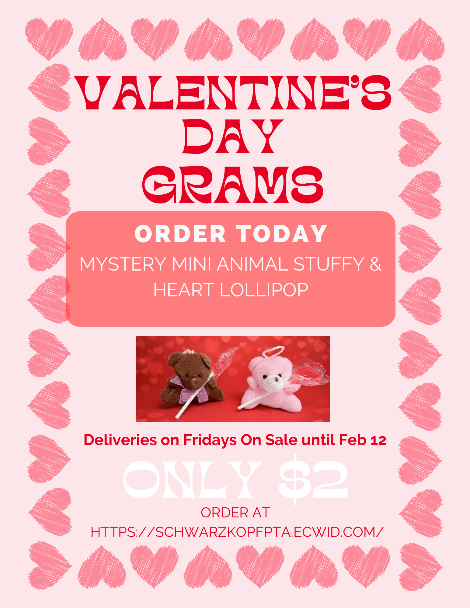 Send a Valentine's Gram to your child, friends, and teachers to show them how much you love them in a festive way!